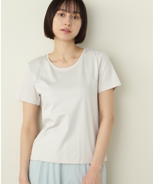 定番人気のオーガニック綿スムース素材の半袖Tシャツ 【デザインポイント】 半袖のクルーネックのTシャツ。ゆったりとしたシルエットと長めの半袖でカジュアルな印象のTシャツです。 【素材のポイント】 オーガニック綿を使用したスムース素材を使用しています。糸の特徴がそのまま出るようナチュラルな仕上げで肌触りが良く着心地も良いです。ご自宅で手洗いが出来るのも嬉しいポイントです。 【おすすめコーディネート】デニムなどを合わせたカジュアルなスタイルにはもちろん、きれいめオフィスカジュアルにも◎オールインワンやキャミワンピースのインナーにもピッタリの万能アイテムです。 ----------------------------------------------------------------------------------- 【HUMAN WOMAN】 1998年よりスタートした”フレンチトラッド”をベースにした大人な女性のためのカジュアルブランド。 素材や縫製にもこだわってつくられた上質な日常着は、長い時間大切にお使いいただけるようにお作りしています。 約20年の歴史の中で、「数年着続けても安心感があるお洋服」と多くの方に高いクオリティを認められてきました。 ベーシックなアイテムにさりげなく加えたトレンド感で、「私らしいカジュアルスタイル」を見つけてみませんか。 「カジュアルが好き」「少しだけトレンドも取り入れたい」 「大切に着たい」「私らしくいたい」そんな思いをかなえるお洋服をHUMAN WOMANでは提案しています。 -----------------------------------------------------------------------------------