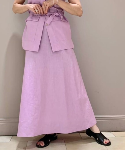優しくナチュラルな雰囲気を醸す1枚 <Demi-Luxe BEAMS>で毎年人気の素材を使用したスカート。高密度で皴になりにくい上質なリネンを使用しました。身体から離れるハリ感としなやかさを併せ持つ、春夏シーズンにぴったりの風合いです。 シルエットは大人フェミニンな印象のAライン。ウエストからヒップにかけて身体のラインに沿わせているのでスッキリとした着こなしを叶えます。甘くなりすぎないようにロング丈に設定しました。大人のデイリーシーンに寄り添う、着回し力抜群のアイテムです。 ●シリーズでこちらの商品もございます シャツ(品番:64-01-0003-002) パンツ(品番:64-23-0006-002) ワンピース(品番:64-26-0023-002) ********************** 洗濯:可(手洗い) 生地の厚さ:普通 透け感:ややあり 伸縮性:なし 光沢感:なし 裏地:なし ********************** Model:H160(cm) Size:38 STAFF Model : H165(cm) Size : 38 【スタッフレビュー】 Demi-Luxe BEAMSスタッフ 身長:160cm / 普段サイズ:38 / 着用サイズ:38 サイズ感: 腰周りが広めの私でも体形を拾わず着用出来ました。くるぶしくらいの程良い丈感です。 素材感: 若干ハリのある麻素材なので、カジュアルになり過ぎません。 ポイント: 腰周りがすっきり見えるデザインで女性らしいシルエットです。 Demi-Luxe BEAMSスタッフ 身長:156cm / 普段サイズ:36 / 着用サイズ:38 サイズ感: ややゆったり目で着丈は足の甲にかかる長さです。 素材感: リネンのサラッとした着心地で素肌に触れても違和感がないです。 ポイント: Aラインのシルエットですが、リネンの落ち感でスッキリしいるのでトップスはイン、アウトどちらも楽しめます。