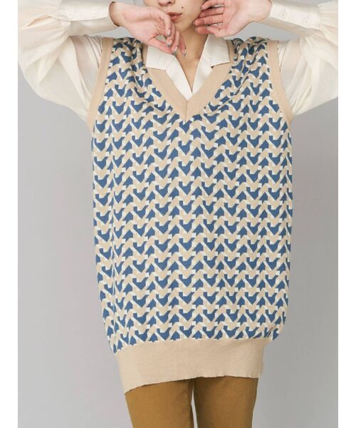 【サマーニット】【ニットベスト】【柄ニット】■商品ポイント・ニットベストとしても、ニットワンピとしても着用可◎・ビッグシルエットでゆったりめに着て頂けます・シャツやTシャツとのレイヤードがおススメ・トレンドのジャガード柄もポイントジオメトリック柄が目を引くジャガードニットです。ストンとしたシルエットで、中にルーズTシャツを着てベストのように着るスタイリングもおすすめとなっています。ショートブーツなどと合わせるとバランスよく着こなしていただけます。