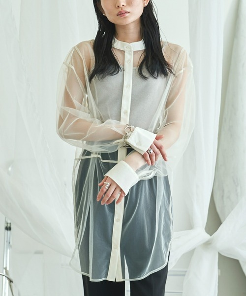 - 2022 VACANCY PRE SPRING COLLECTION - ◆トレンドのシアー素材がポイントのシアーメッシュバンドカラーシャツ【特徴】昨年から人気のシアー素材トップスからシアーメッシュバンドカラーシャツが登場!シアーの生地感が春らしく、トレンドのコーディネートにしてくれます。カラーは定番のブラックとホワイトとシアーながらもきれいな発色のブルーとオレンジの4色展開でご用意しました♩【スタイリングポイント】インナー次第で雰囲気を変えてくれるのでタンクトップ合わせでヘルシーに、Tシャツ合わせでカジュアルにと幅広いテイストで着回しができます。インナーをロゴTにしてロゴを透かせるとよりトレンドの着こなしが叶います◎・・・・・・・・・・・・・・・・・・・・透け感:あり裏地:なし伸縮性:なし光沢感:なし生地の厚さ:薄い・・・・・・・・・・・・・・・・・・・・【お買い物をお楽しみいただく為に】▼お気に入り登録をオススメ致します▼♡をクリックして下さい。・《商品のお気に入り登録》で再入荷通知や、ラスト1点の通知、セールの際の通知も受け取ることができます。・《ブランドのお気に入り登録》で新作商品や再入荷など、お得な情報を受け取ることができます!【ATTENTION】 ※画像の商品はサンプルです。実際の商品と色味、仕様、加工、サイズ、素材等が若干異なる場合がございます。※撮影場所やお使いのモニター環境により若干お色味が異なる場合がございます。※製品によっては染料の特性上、湿った状態や汗をかいた状態での長時間の放置、または摩擦により、他のものへ色移りする恐れがありますので、着用時にはご注意下さい。 ※お洗濯は洗濯ネットを使用し、他のものとの混合洗いはお避け下さい。色落ちや色移りの原因となります。 タンブラー乾燥はお避け下さい。 ※風通しがよく、湿気の少ない日の当たらない場所で保管して下さい。 ※また製品加工上、お手元に届く際に匂いが生じる場合がありますが、 ご使用を続けていく事により匂いは軽減されます。※ご注文いただいた予約商品のお届け時期の確認は、注文履歴ページより行えます。