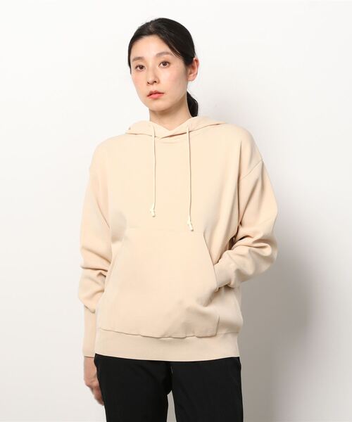 軽量のニットのPO.。ゆったりとしたシルエットで、小顔に見えるフードの形状に拘っています。汗をかいてもドライでベタつかない素材感。何にでも合わせやすいシルエットが嬉しい。※リサイクル糸を使用したニットです。