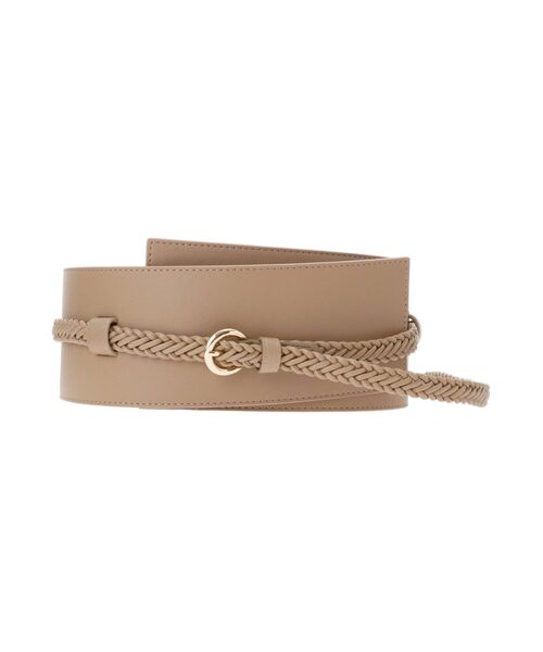 太めのコルセットベルトと華奢なメッシュベルトのセットアイテム。 コルセットとして使うならメッシュベルトを太ベルトに通して使い、パンツなどに合わせるときは外して細ベルトとして使えます。