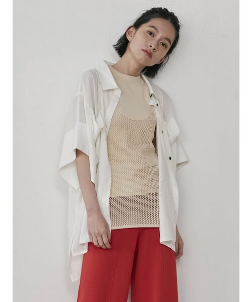 さらっと羽織れるお洒落なとろみシャツ【Point】 メンズライクなオーバーサイズに女性らしさのある 透け感が特徴のシャツブラウス。 トレンドのビックポケットが目を惹くアイテムです。 1枚あればどんなアイテムでも合わせられる万能アイテムです。 【Coordinate】 テイストを問わない、どんなコーディネートにもマッチすシャツブラウス。 スウェット合わせのカジュアルスタイルから、 フェミニンなスカート合わせまで相性抜群です。 【商品詳細】 伸縮性:無し 裏地:無し 透け感:有り 生地の厚さ:薄い