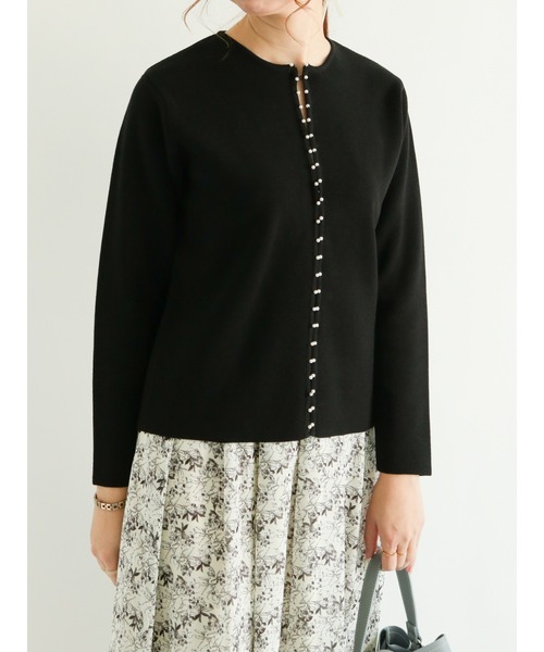 小粒のパールボタンを散りばめた上品で愛らしいクルーネックカーディガン。フロントホック仕様ですっきりと着用することができます。目の詰まったニットも品良くスタイリングできるカギに。普段使いはもちろん、デートや女子会などのシーンにと幅広く活躍してくれるアイテムです。 <コーディネート モデル:163cm> ※商品画像は、撮影環境やお客様のご利用のPC・スマートフォンのモニター環境などにより実物と色味に差異がある場合がございます。