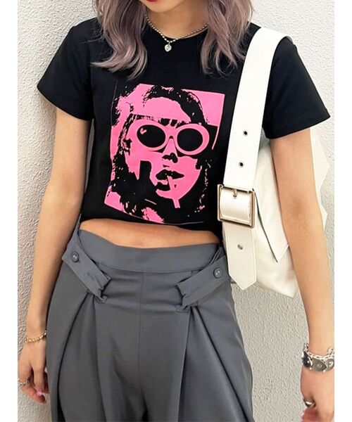 【ポイント】 大胆にプリントされたグランジ風Tシャツ。 着やすいオフやブラックはもちろん、ワントーンのブルーで新鮮さも◎ どんなアイテムと合わせてもこなれ感が出る万能アイテム! 【ファブリック】 身体にフィットする伸縮性のあるカットソー生地で、着心地抜群です。 【スタイリング】 程よく体にフィットするTシャツが今の気分にぴったり。 ワントーングラフィックなので1枚でそのまま着用するのは勿論、キャミワンピースのインナーとしても大活躍すること間違いなし!