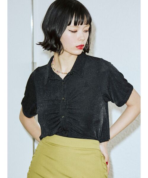 【ポイント】 程よく体にフィットするサイズ感が今の気分にぴったり! 前立てに入ったギャザーでシンプル過ぎず、カジュアルになりすぎないのがポイント。 トップスとしても羽織としても着ていただける万能アイテム。 【ファブリック】 伸縮性のある生地で程よく体にフィットするサイズ感。 クリアカットボタンが目を惹くアイテム。 【スタイリング】 スカパンやデニムなどボトムを選びません。 ボタンを少しはずしてインナーを見せてあげるとこなれ感がグッとアップします。 ※ギャザー幅が上に3cmプラスされます。