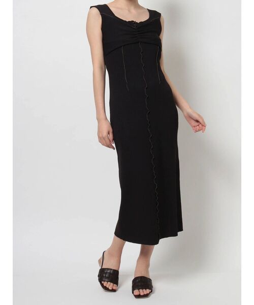ビスチェレイヤード風のデザインと、 さり気ない配色メロウがアクセントのニットワンピース。 糸はシャリ味がある、春夏らしいさらっとしたサマーニットを使用しています。 ストンとしたシンプルなシルエットですが、デザインがしっかり効いているので体型も気にせず着られます。 フロント釦は開けて抜け感をプラスしても◎ 背中は深めにラウンドさせ、辛めなテイストの中に女性らしさを演出しました。 ▼スタイリング シャツやボレロなどの羽織を合わせても、フロントのデザインが映える一枚です。 インナーにノースリーブのカットソーをレイヤードしても◎ カジュアルめなワンピースなので、足元はあえてヒールでエレガンスさを取り入れるのもお勧めです。 ▼モデル着用サンプル修正箇所 ※後ろの切替、メロウのデザインは無くなります。