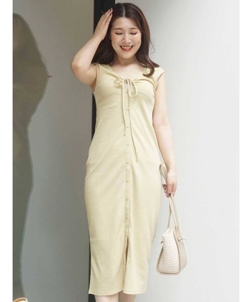 胸元に丸くカットされたスリットにリボンを通してギャザリングしているのがポイントのカットワンピース。Iラインのシルエットと、胸下切替でスタイルアップできます。前後2wayで着られるので着回し力抜群です。【スタイリング】一枚でさらっと着てもよいですが、下にプリーツスカートやレーススカートなどをレイヤードしても◎。その時、裾のボタンをいくつか開けてよりレイヤード感を見せるのがおすすめです。※胸下の切替位置はもう少し低くなります。※写真はサンプル品です。※着用画像はフラッシュの加減で実際の製品と色味等が異なる場合がございますので、生地のズームアップ画像をご確認ください。※ご利用の端末画面の設定により実際の商品と色味が異なる場合がございます。【商品特徴】透け感:なし伸縮性:なし生地の厚さ:普通サイズ感:普通裏地:なしポケット:なしファスナー:なし