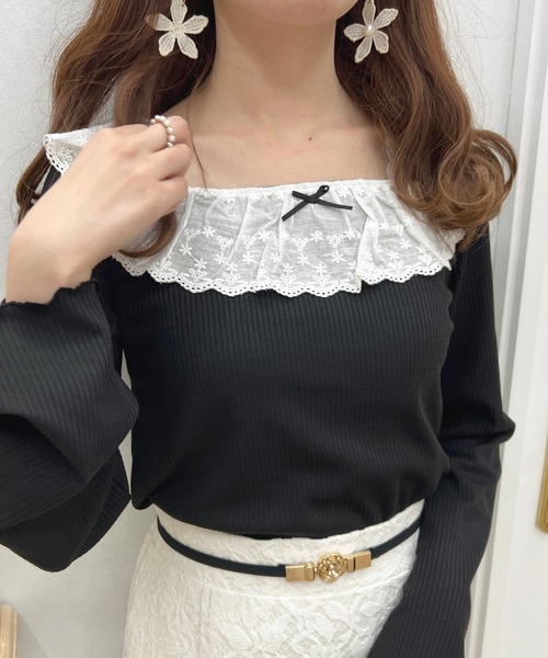 ◆大人かわいい甘めトップス♡首周りのレースとリボンが可愛らしいトップス。スクエアネックで大人っぽい印象を与えてくれます。伸縮性に優れた生地で作られており、肉感を拾わず身体のラインを綺麗に出せる!華奢見え効果が期待できるアイテムです◎袖は、フレアスリーブになっており上品で女性らしい印象に!腕を細く長く見せることができるのが嬉しい!袖口はメロウデザインで、ディティールにもこだわった可愛いが詰まったトップスです♡*コーデ紹介*マーメイドスカートなどのタイトなシルエットのボトムと合わせれば大人っぽく女性らしい雰囲気で着用できます。デニムやフレアパンツなどのパンツアイテムとも相性が抜群◎カジュアルなフレンチガーリーコーデに!ご覧のモニター環境や撮影環境により実際の商品と多少色味が異なって見える場合がございます。ご理解の程よろしくお願いいたします。【お買い物をよりお楽しみいただく為に♪】▼商品のお気に入り登録をおすすめします♡をクリック!完売カラーの再入荷や、ラスト1点の通知、セールの際の通知を受ける事ができます。ブランドのお気に入り登録もご一緒にお願い致します。