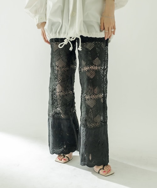 1枚でスタイリングが華やかに仕上がるレースパンツが登場商品ポイント・細身過ぎないストレートの形でラインを出さない美シルエットにパンツが登場。・ヴィンテージレースが1枚で華やかな印象に。・レイヤードボトムとしてスタイリングのアクセントに合わせるのもオススメ◎・夏場まで長いシーズンお使い頂けます!2サイズ展開も嬉しいポイント◎スタイリングポイント・長めのシャツに合わせて綺麗めなスタイリングに。------------------------------------------------------裏地:あり伸縮性:あり光沢感:なし生地の厚さ:普通------------------------------------------------------------------------------------------------------------商品のお気に入り登録➡ お気に入りアイテムの値下げ・再入荷・在庫1点などの通知を受け取ることができます。ブランドのお気に入り登録➡ 新商品や再入荷、セール、クーポン配布などお得な情報を受け取ることができます。※サイト上のカラー名と、お届け商品に記載されているカラー名が異なる場合がございます。※商品の色味は、撮影場所や光のあたり具合などにより色味が違って見える場合が御座います 。また、お客様のお使いのPCのモニター環境などにより色味が違って見える場合が御座います。予めご了承の上ご注文下さい。※ご注文いただいた予約商品のお届け時期の確認は、注文履歴ページより行えます。------------------------------------------------------'