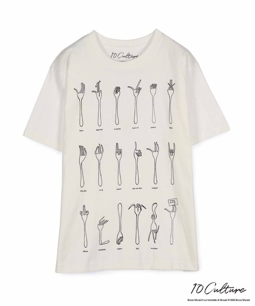 10 CULTURE(Fashion Sports Art Music Resort Economics Movie Food Architecture Literature ) をバックグラウンドにしたレーベル「10Culture(テンカルチャー)」。これまで、さまざまなカルチャーからインスパイアを受けたアイテムを展開してきましたが、今回は、20世紀のイタリアのアート、デザイン、グラフィックを牽引した、BRUNO MUNARI(ブルーノ ムナーリ)とのコラボレーションTシャツを発売。ブルーノ・ムナーリの作品の中でも有名なハンドサインをTシャツに落とし込みました。《Supplemento al dizionario italiano》イタリアでは一言も言葉を発することなく、手振り身振りで無限の会話をすることができます。イタリア人は、数え切れないほどの物事や行動、感情をジェスチャーで表現します。ジェスチャーの特徴は、どんな話し言葉よりも、ある特定の精神状態や心理的感情をより正確に、強く表現することができることです。1958年に出版された”Supplemento al dizionario italiano”にインスパイアされたこのポスターは、ブルーノ・ムナーリによる手のジェスチャーの写真を集め構成されたものです。《Le forchette di Munari》"これはフォークのゲームだ、子供とするような頭の体操だ"と。知的で意外性のあるものを得意とするブルーノ・ムナーリは、日常から非日常を引き出す術を心得ていました。フォークを手に見たて、様々なハンドサインを表現しています。このポスターは、1958年に出版された”Le forchette di Munari”からインスピレーションを得て、作成されました。【Bruno Munari/ブルーノ ムナーリ】ブルーノ・ムナーリ(1907-1998)は、20世紀イタリアのアート、デザイン、グラフィックを牽引した一人です。30年代に第二次未来派の芸術家たちと初めて交流して以来、絵画、彫刻、デザイン、写真、教育などの分野で、常にあらゆる形態の「実験」に創作活動を捧げました。アーティスト・デザイナーとしての多彩な活動の一環として、彼は常に子供の世界に特別な関心を寄せていました。コンテンツと形や素材を切り離すことなく、彼がデザインしたものは、本であり、本のオブジェであり、そして考えさせるゲームでした。