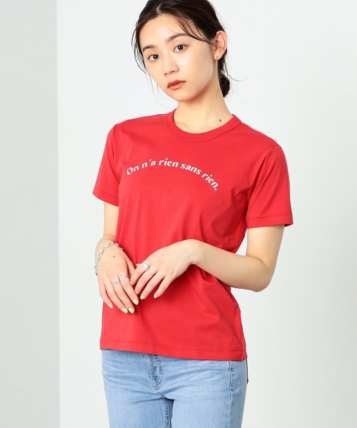 フレンチカジュアルスタイルにピッタリのおすすめアイテムシンプルなシルエットだからこそ、素材にこだわったハーフスリーブTシャツ。綿に光沢を与えるシルケット加工を施したコットン100%素材を使用。なめらかな肌触りと、さらりとした着心地が特徴で洗濯しても毛玉やシワになりにくいデイリーユーズにピッタリの素材。ベーシックなボックスシルエットだからこそ、身頃と袖のフォルム、袖と着丈の最適なバランスを徹底的に計算し、女性の体にフィットするよう緻密に調整されたフィット。デザインは、フランスの格言を用いたアーチロゴ。ロゴの文字数や配置にこだわり、バストトップが高く見えるよう設定。デニムにインしてスッキリと大人っぽく合わせるのがおすすめ◎カラーのラインナップもトリコロールカラーで展開。**********************ZOZOTOWNでのお買い物のポイント教えます!欲しいアイテムのお気に入り登録をしましょう♪♡マークをclickすると、、、・お買い忘れ対策に!…完売アイテムの再入荷やラスト1点の情報をお知らせします・欲しいアイテムをお得にGET…値下げになったり、在庫がなくなりそうな時にいち早くお知らせします・気になるアイテムだけを比べたい!スムーズ検索…ZOZOのお気に入りアイテムページで簡単checkできるから、再検索不要♪**********************