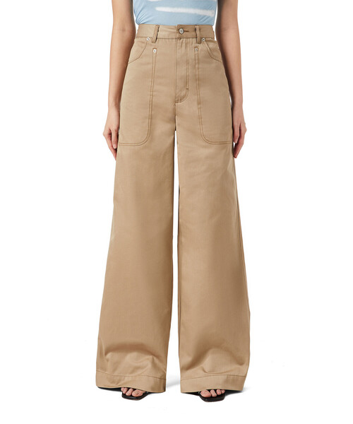 カジュアルなワークパンツほど美シルエットにこだわりたい。そんなハイウエストパンツがさらにトレンド感をおさえた1本。脚長効果抜群でメリハリのあるシルエットや丸みを帯びたポケットデザインが女性らしさを演出します。ショート丈のトップスやボリュームのある一枚をインしたスタイリングがおすすめです。 本製品は65%認証リサイクルポリエステルを使用しています。