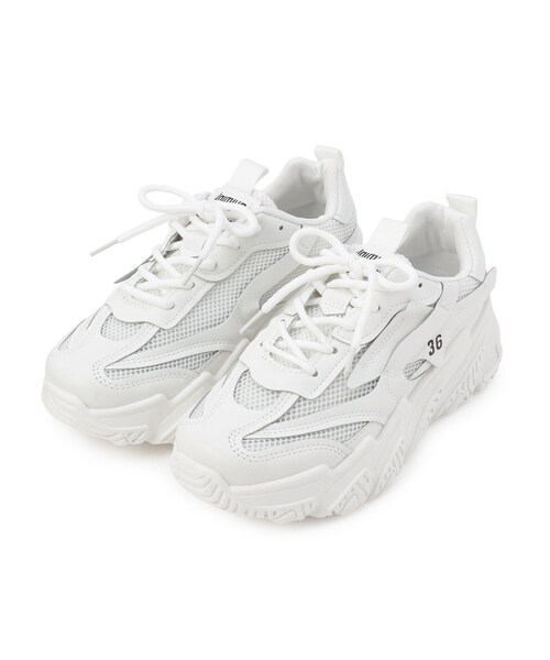 同色のメッシュ切り替えがさり気ないアクセントになるダッドスニーカー。 ソールに厚みを加えることでスタイリッシュな印象に。 ボリュームが出過ぎないよう、ローカットにしています。 ※画像と柄の位置が異なる場合がございます、ご了承下さい。 ※配送時の状況により、箱が破損している場合がございますので予めご了承下さい。 店舗へのお問い合わせ商品番号:P08-01054 ●製品寸法: S(22.0cm-22.5cm):対応サイズ22.0~22.5cm ヒール高5.8cm 幅8.6cm プラットフォーム5cm 重量片足約390g M(23.0cm-23.5cm):対応サイズ23.0~23.5cm ヒール高5.8cm 幅8.8cm プラットフォーム5cm 重量片足約395g L(24.0cm-24.5cm):対応サイズ24.0~24.5cm ヒール高5.8cm 幅9cm プラットフォーム5cm 重量片足約410g LL(24.5cm-25.0cm):対応サイズ24.5~25.0cm ヒール高5.8cm 幅9.2cm プラットフォーム5.5cm 重量片足約425g 備考: