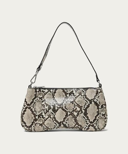 コーディネートにスパイスを投入するパイソン柄が印象的なバケットバッグ。 ■デザイン ヴィンテージショップに飾られているようなクラシカルなフォルムがタイムレスに寄り添う一品です。太めのショルダーストラップがシンプルなコーディネートのアクセントとして活躍します。 <JW PEI(ジェイダブリュー ペイ)> 2016年にスタート。 モダンでミニマリストなファッション感覚を持つ女性たちの間で注目が高まっているバッグブランド。 手頃な価格で手に入る、エレガントでトレンド感のあるデザインが人気を集めています。 【注意事項】 ※画像商品はサンプルのため、実物と色味や仕様・素材等が異なる場合もあります。 店舗へお問い合わせの際は、全国のOdette e Odile各店舗まで下記の品名/品番をお申し付け下さい。 品名:JW PEI EvaShoulderBag P 品番:4532-499-2452
