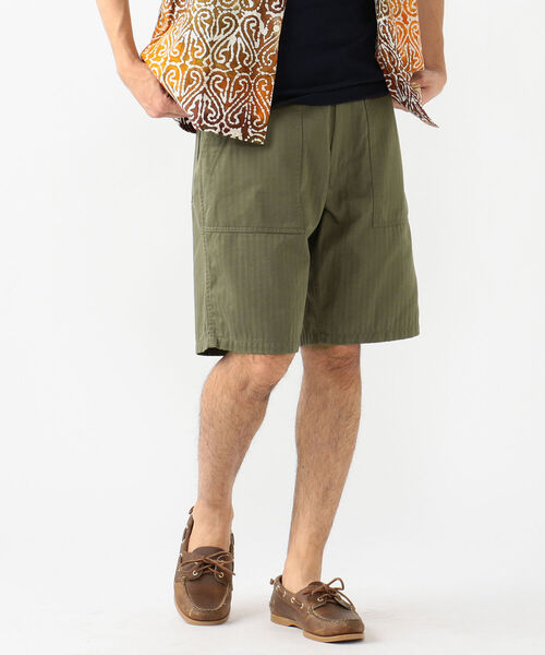 機能的なポケットワークと上質な生地 上質なスーピマコットンを使用したヘリンボーン生地の<BEAMS PLUS>ミリタリーユーティリティ ショーツ。素材や生地を柔らかくするニドム加工を施し、ソフトで柔らかなタッチ感を実現しています。 型は、U.S.ARMYの通称「ベイカーパンツ」をベースにカットしたデザイン。サンプルにしたヴィンテージ同様、ワイドなシルエットはそのままに、生地とディテールをアップデートしています。 ポケットのディテールは前後共にダブルポケット仕様にし、細かな仕分けが可能。現代的で機能的な作りです。 Model: H 178cm W 63kg Size:M ※撮影環境による光の当たり具合やパソコンなどの閲覧環境によって、実際の色調と異なって見える場合があります。あらかじめご了承ください。商品の色調は白背景商品単体で撮影した画像をご参照ください。 BEAMS PLUS / ビームス プラス ”長年着られる飽きのこない本物の男服”をコンセプトに、次世代へと続くカジュアルウェアのオーセンティックを追求しています。