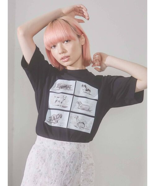 6匹の 犬たちを集めたTシャツです。アンニュイな表情の 犬たちは、何かを物語っているよう。モノトーンプリントで、どんなボトムとも相性の良いitemです。