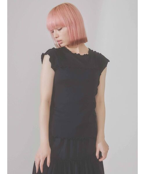 〇 LOOK use item 〇 うねうねと、波打つメロウ刺繍が アクセント。 Topsとしてはもちろん、レイヤードにも重宝する 暑い季節のマストitemです。 ところどころを リブ素材で切り替えることで、 stylingにこなれ感をプラス。 軽やかなカットソー素材で、 お手入れしやすいのも嬉しいpointです。