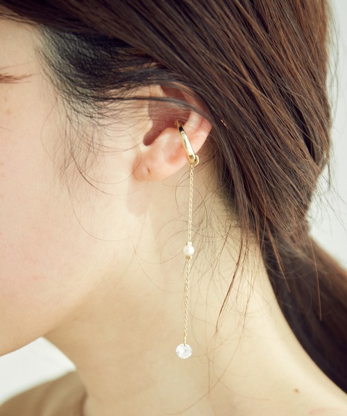 ゆらゆら揺れてスタイリングのアクセントに!【デザイン・シルエット】 チェーンが軽やかに揺れるイヤーカフのアソート展開。 耳にかかるメタル部分はニュアンスラインでこなれた印象に。 プチピアスと合わせてお使い頂くのも、シンプルにシングル使いもおすすめです! 【カラー】 (90)シンプルなチェーンのみ (91)イヤカフ部分にパール付き (92)チェーンにパールとストーン付き ※画像の商品はサンプルです。 実際の商品と仕様、加工、サイズが若干異なる場合がございます。