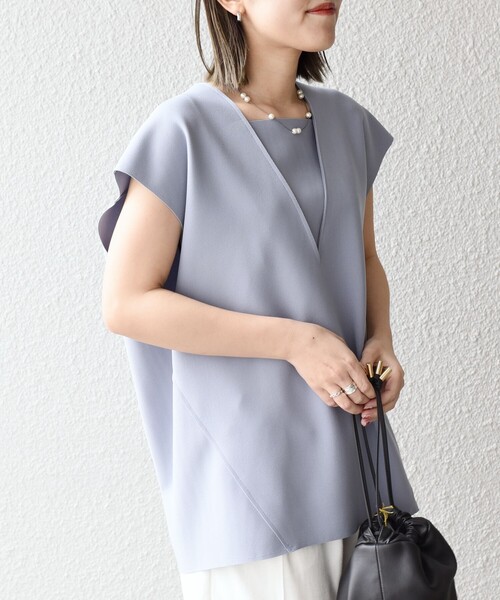 一枚着からベストとして重ね着まで、幅広く着まわせるトップスが登場! ■デザイン ・ネック部分が取り外し可能!一枚着としては勿論、ベストとして重ね着もおすすめです。 ・裁ち切り、サイドの切り変えがさりげないアクセントになっています。 ・バッグに入ったタックがボリュームを出し、体のラインを拾い過ぎず程よいバランスになります。 ■素材 ・ボンディング加工によりカットソー素材でありながら立体的な仕上がりと、ポリウレタンによる収縮性が特徴です。 ・肌離れの良い、サラっとした素材感がシワになりにくく、夏にも良いです。 ・ご自宅でお洗濯が可能です。 ■コーディネート ・梨地特有のシャリ感とキレイめな素材ながコーディネートの幅を広げ、お仕事着としても◎ ・インナー合わせで、ベストとしても使える万能な一枚です。 ------------------------------------- 生地の厚み:薄手 伸縮性:有 透け感:無 光沢感:無 水洗い:可 ------------------------------------- 【スタッフ着用コメント】 《スタッフ1》 身長:156cm/体型:細身/普段サイズ:36/着用サイズ:ONE SIZE サイズ感:ゆったりとしたサイズ感。ボディラインの出にくいシルエットです。 コメント:アームホールも広めで、レイヤードするインナーを選びません。 ------------------------------------- 《スタッフ2》 身長:164cm/体型:普通/普段サイズ:38/着用サイズ:ONE SIZE サイズ感:身幅はゆとりのあるサイズ感で、後ろの着丈はヒップが隠れるくらいです。 コメント:さらっとした表面感で肌離れ良く着用できました。 ------------------------------------- ※デザイン上、意図的に端を裁ち切り状態にしています。 ※末永く愛用頂く為に、アテンションタグを必ずご確認の上、着用又はお取り扱い下さい。 ※屋外での撮影画像は、光の当たり具合で色味が異なって見える場合があります。商品の色味は、スタジオでの詳細画像をご参照ください。 ※商品画像は、光の当たり具合やパソコンなどの閲覧環境により、実際の色味と異なって見える場合がございます。予めご了承ください ※画像の商品はサンプルです。 実際の商品と仕様、加工、サイズが若干異なる場合がございます。 ※工場の生産の都合上、納期が変更になる場合がございます。発送日の前後については予めご了承ください。