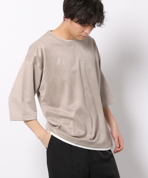 A/Wシーズンに大好評だったレイヤードデザインのTシャツ。 ネックと裾の内側にカットソーを重ね、インに白Tシャツを合わせたようなデザインに。 1枚でスタイリングが決まる便利なアイテム。 【素材】 なめらかな肌触り、やさしいタッチ感が特徴のフェイクスエード素材。 【スタイリング】 テーパードシルエットのスリムパンツでキレイめに。 チノパンツと合わせれば、カジュアルな雰囲気に仕上がります。