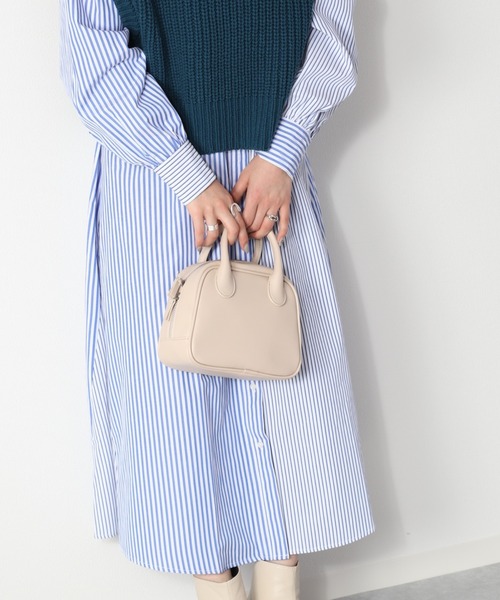 2種類のショルダー紐で雰囲気が変わるミニバッグ◇Point◇シンプルで使いやすいデザインのボストンバッグです。コロンとしたデザインがなんともカワイイです。ショルダー紐が2種類ついており、コーデによって付け替えていただくと雰囲気がかわります。◇Material◇ショルダー紐はストライプ柄の太めのものと、バッグと同素材の細めの紐の2種類です。ショルダー紐なしでハンドバッグとしても使えます。Wジップなのでショルダー持ちをした時の使い勝手も抜群です!◇Coordinate◇どんなコーデにもマッチするシンプルなデザインです。小ぶりですがマチがほどよくあり、使い勝手も◎※ショルダー紐は長さ調節不可です。※照明や天候により実際の色味と異なって見える場合がございます。ご了承くださいませ。