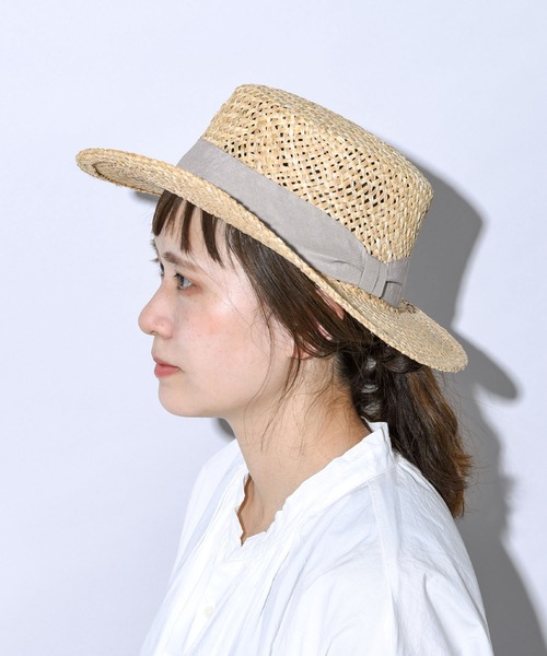 軽くて通気性の良い天然素材に 甘すぎないシンプルリボンが大人可愛いカンカン帽 天然素材で爽やかな印象の夏の定番カンカン帽。シンプルなリボンで甘すぎないデザインで幅広いスタイリング・シーンにマッチします。 ボーダーTシャツやカーディガン、 シャツワンピースなどとも相性が良く、 フェミニンなスタイリングから デニムやポロシャツ、白Tなどシンプルカジュアルな スタイリングのワンポイントとしてもおすすめ。 バレエシューズやトングサンダルを合わせた マニッシュスタイリングなども一押しです。 サイズ・・・頭周り56~58cm(サイズ調節付) 前つば幅約7.5cm 【オススメコーディネート】 シンプルなTシャツ、デニムコーデに合わせるのが最高にオシャレな着こなし。 ポケTやヘンリーネックTなどのカジュアルアイテムに合わせるのがポイントです。 ブラウスやシャツ類との相性も抜群。マニッシュな着こなしが完成します。 とろみ系シャツやボリューム袖カットソーなどの女性らしいアイテムと合わせても◎ シャツワンピやTシャツワンピなどのワンピース類と合わせれば綺麗めなサマーコーデに。 スタンダードなアイテムなので、パンツスタイルからスカートコーデまで合わせていただけます。 デニムやチノパンを合わせればボーイッシュなコーデに。 プリーツスカートやロングスカートと合わせれば女性らしいコーデが完成します。 シンプルなデザインなので、ポニーフックやヘアゴムなどのヘアアクセでアクセントをつけるのもオススメ。 パールネックレスや大振りピアスなどを合わせてもスッとまとまります。 バッグにカゴバッグやメルカドバッグなどを組み合わせてサマーコーデを楽しんで。 足元にはグルカサンダルやエスパドリーユがオススメです。