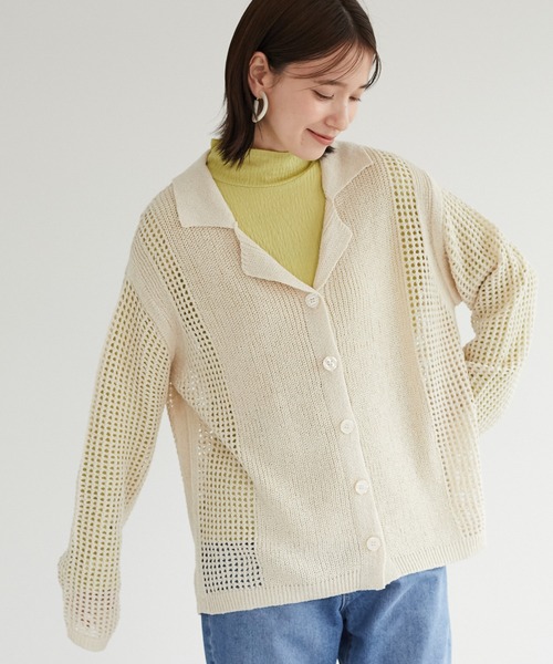 こなれた雰囲気溢れるすかし柄衿付きニットカーデ。 シーズンムード高まる透け感が絶妙で、インナーの丈感次第で初夏や秋口にも活躍します。 カットソーやパンツと相性が良くトレンディなコーディネートに仕上がる優秀アイテムです。 【素材】 透け感[無し] 裏地[無し] 伸縮性[有り] 光沢感[無し] 生地の厚さ[普通] 付属品[無し] ポケット[無し] ● Green Parks ● (グリーン パークス) 20以上の人気ブランドを取り扱うアパレルセレクトショップ。 ベーシックながらもさりげなくトレンドを取り入れたオリジナルブランドchocol raffine robeも展開。 ▼ 商品のお気に入り登録がおすすめです ▼ 商品ページ内のハートマークをクリック。完売時の再入荷や、最後の1点の通知、コーディネート画像がアップされたとき、お得なお値下げの際の通知を受ける事ができます。 【お知らせ】ページでも通知が確認できます。