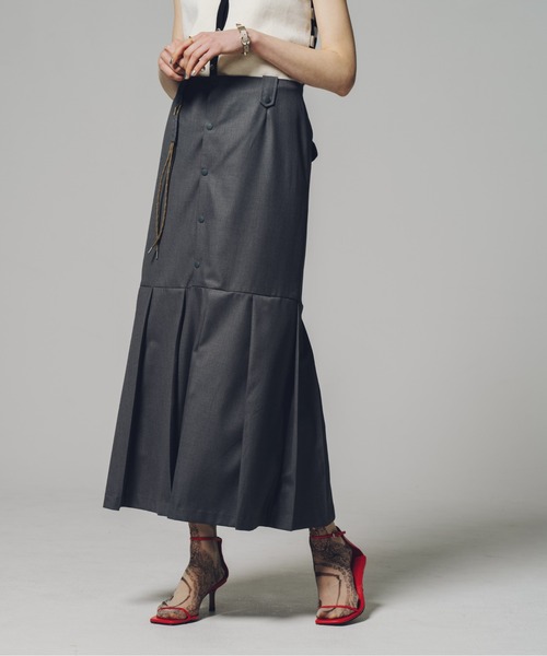 プリーツ加工がデザインポイントの一枚でこなれて着こなせるスカート。柔らかく着心地の良い素材でありながらも程よくハリがあるので、シルエットがきれいに出ます。ベルトレスなのでウエスト周りをスッキリ見せてくれます。ウエストに対して裾の広がりが大きいため、上半身に華奢な印象を与えてくれるスカート。ウエスト部分にはコード紐がついており綺麗すぎず履けるようにデザインポイントとして置いていますが、スタイリングによって外すことも可能。■商品のお気に入り登録(ハートマークをクリック) 完売カラーの再入荷通知や、在庫ラスト1点の通知、セールの通知を受け取ることができます。 ■ブランドのお気に入り登録 新商品がUPされたり売り切れ商品が再入荷したときなど、いち早くブランドのお得な情報を受け取ることができます。是非ご利用頂き、お買い物をお楽しみください。
