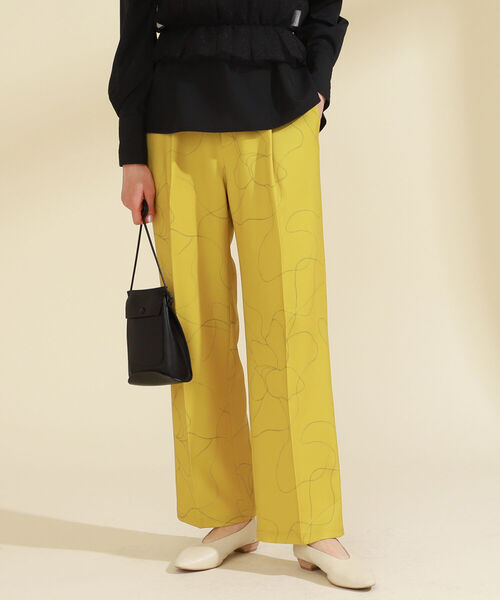 クラシカルで上品なデザインオリジナルのライン柄をプリントしたパンツ。シルエットは細身のストレート型で、バックウエストに程よくゴムを入れているので着用しやすいひと品です。1タックから出るセンタープレスラインが上品でカジュアル過ぎないデザインもポイント◎。オンオフで活躍すること間違いなしです。※柄の出方に個体差がございます。予めご了承ください。BROWN Model:H166 (cm) Size:1YELLOW Model:H170 (cm) Size:1