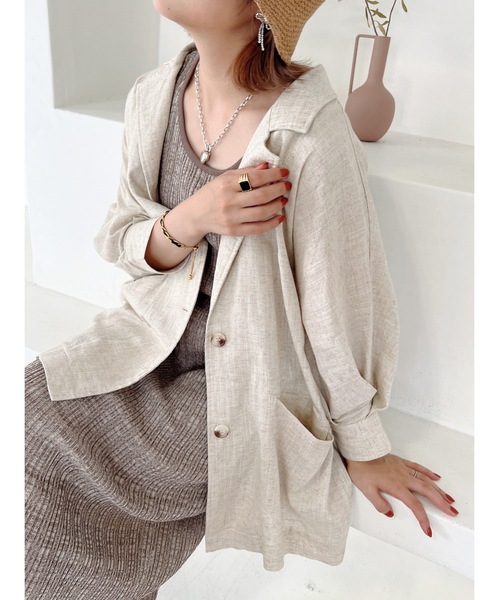 リネン素材が涼しげな、七分丈のジャケット。ドロップショルダーとドルマンスリーブがコーディネートに抜け感を出してくれます。ベルトでウエストをマークすることで、スタイルアップ効果も。もちろん、ベルトなしでサラッと羽織ることもできます♩今季トレンドのデニムとの相性も◎です!・・・・・・・・・・・・・・・・・・・・・・・・・・・・・・・・・・・・・・・・・・・・・・・◆アイテム詳細素材・・・レーヨン70% 麻30%透け感・・・なし生地の厚さ・・・普通伸縮性・・・ややあり裏地・・・なし・・・・・・・・・・・・・・・・・・・・・・・・・・・・・・・・・・・・・・・・・・・・・・・◆サイズ感お尻がちょうど隠れるくらいの丈感。袖周りもゆったりと着ていただけるシルエットです。ウエストのベルトは自由に結ぶことが出来るので、お好みに合わせて調整が可能です。◆スタイリングデニムやスラックスなどに合わせるのが可愛いです。中のトップスにカラーアイテムを合わせれば、トレンド感が出るのでおすすめです。