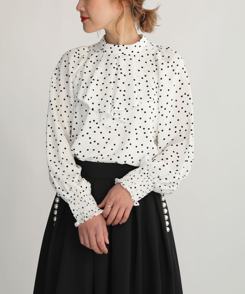 立体的なシルエットが可愛いドットブラウス。柔らかく滑らかな肌触りのドット生地を使用し、着心地も◎な一枚です。フロントのラッフルデザイン、肩ギャザー、袖口シャーリング、ふんわりとしたボリュームスリーブなどと、可愛らしさと動きのあるシルエットになっています。一枚で華やかコーデが叶うので、デイリー使いにもパーティーシーンなどのオケージョンにも◎です。※撮影場所や明るさにより実際の商品と色味が若干異なる場合がございます。 ☆商品のお気に入り♡登録を押せば”再入荷通知”や”残りわずか通知” 値下げのお知らせが届きます!お気に入りのブランド登録していただければ新商品入荷のお知らせも届きますので是非登録してみて下さい。