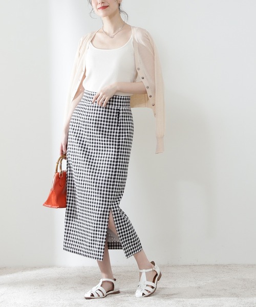 春夏にぴったりなギンガムチェック柄で女性らしいシルエットを引き立てるタイトスカート。ウエスト切り替えでお腹周りをすっきり見せ、縦ラインを強調するサイドボタンがインしたときのポイントに。着丈が長いタイトラインですが、前裾にスリットデザインを深く入れて足さばき良く仕上げています。ニットやカットソー、これからの季節はTシャツとのコーディネートも楽しめます。≪お買い物をよりお楽しみいただくために≫・「商品のお気に入り登録」で再入荷通知や、ラストの通知、セール通知も受け取ることができます。・「ブランドのお気に入り登録」で新商品や再入荷など、お得な情報を受け取ることができます。