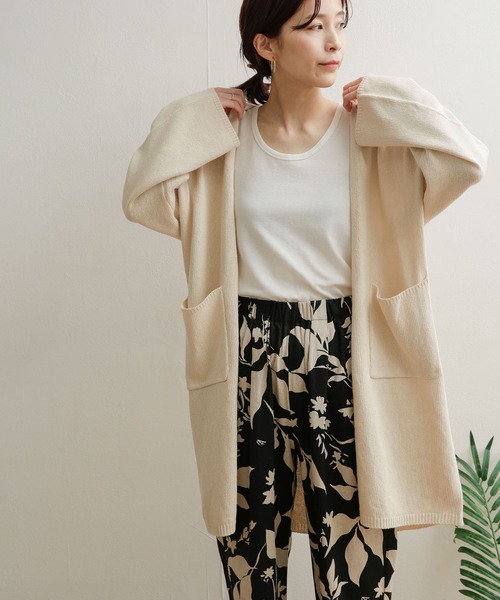 ふっくらとした綿麻の素材感が風合いのあるカーディガンを、ガウンのように着られるロング丈でご用意しました。しっかりと長さのある着丈は縦のラインを演出し、ボタンレスのフロントもスッキリとした印象に。サイドに付いた大きめのポケットがアクセントになり、スマホやハンカチなどを入れられるような利便性も持ち合わせています。ナチュラルな2色をセレクトし、羽織るだけで大人のリネンスタイルが完成。夏は日除けや冷房対策にも活躍します。※商品画像は、光の当たり具合やパソコンなどの閲覧環境により、実際の色味と異なって見える場合がございます。予めご了承ください。※商品の色味の目安は、商品単体の画像をご参照ください。-----------------------------透け感 :ややあり(IVORYのみ)伸縮性 :あり裏地 :なし光沢 :なしポケット :あり-----------------------------