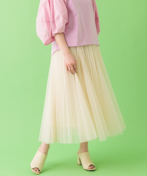 人気のチュールスカートにプリーツ仕様が登場。○POINT・春らしい軽やかなデザイン・プリーツ+切替により、程良くボリューミーに・ウエストは平ゴムでインしてもすっきり○STYLING・カットソーやブラウスをインすればすっきりとした春らしいスタイリングに・スエットやニットをオーバーで着ればゆるカジュアルスタイルに