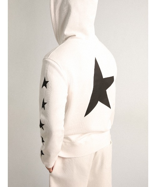 背中と両袖にアイコニックなスターモチーフをプリントしたデザインが特徴的なスウェットパーカー。肌触りの良い裏パイル仕立てのスウェット素材を使用し、シルエットはレギュラーフィットで仕立てました。同素材のショートパンツとのセットアップコーディネートもお薦めです。 【Star Collection】 1970年代をインスピレーションの源とし、時代を超えて愛されるヴィンテージスタイルを魅力とする"Star Collection"。伝統的なテーラリング技術と現代性の融合を実現しました。幅広いシーンに対応するカジュアルなアイテムを求めるあなたにぴったりの一着がきっと見つかります。