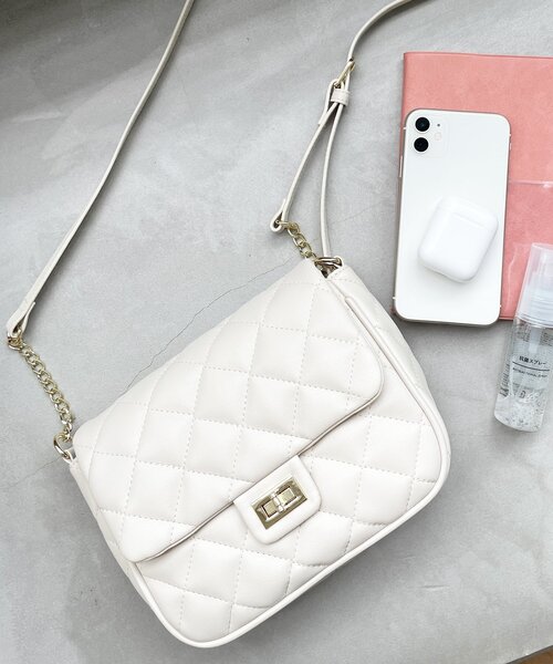 ソフトなスムース合皮にキルティング加工を施したミニショルダーバッグです。チェーンを部分使いしたショルダーがデザインポイントです。クラシックなデザインなのでオールシーズン活躍できるアイテムになります。※ポケット数:内側×1※長財布、350mlペットボトル収納可能店舗へのお問い合わせ商品番号:C59-14006●製品寸法:00:高さ16cm 幅(上部)21cm 幅(下部)18cm マチ5.5cm ショルダー対応サイズ106~118cm備考:重量:約280g