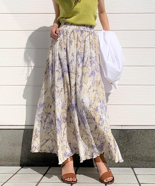マイクロギャザープリーツのマキシ丈スカートです。 パステルカラーが可愛い、マーブルペイント柄。 プリーツが適度なボリュームと腰回りのすっきり感をバランスよく出してくれてきれいなシルエットに。 裾やウエストの端部分はカラー始末にしているのでアクセントになり、デザインにメリハリをつけてくれます。 《インフォメーション》 ◆商品のお気に入り登録 完売していても再入荷時に再入荷通知を受け取ることができますので、是非ご登録ください。 ◆ブランドのお気に入り登録 新商品や再入荷などの情報を受け取ることができますので、是非ご登録ください。