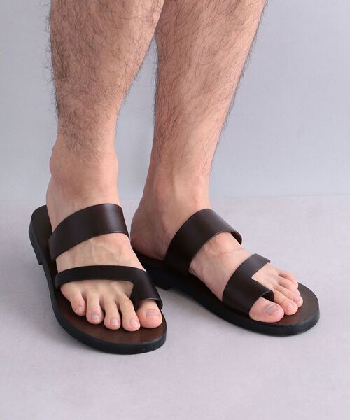 イタリアを代表するサンダル専業ブランドに作成を依頼したレザーストラップサンダル。 50年以上に亘って引き継がれてきた技術と経験をもとに、独自の工程を経て作られています。 未加工の状態で仕入れた牛革は、型を作った後、植物由来の天然色素で徐々に染め、仕上げには刷毛を使って手作業で色付けされます。 最後に外気に触れさせて乾燥させたサンダルは、TUFFATO(トゥッファート)と呼ばれる、味わい深い色合いに仕上がります。 この工程は極めて正確な作業が求められ、生産に時間がかかるという理由から、今ではほとんど行われていません。 カジュアルのみならずキレイメなスタイリングにもマッチするミニマルなデザイン、落ち着いた上品な印象にスタイリングを格上げします。 味わい深い発色と革本来のナチュラルな風合い、透き通るような艶の高級感のある仕上がり、履き込むほど足に馴染む履き心地は秀逸です。 失われつつあるイタリアのクラフトマンシップを存分にお楽しみください。