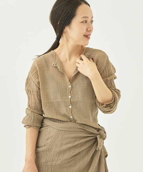 VMID:665456279※動画はブラウザからのみ閲覧頂けます。【2022SS】Plage◆大人気!LES ATELIERS FRANCAIS DE CONFECTIONが追加入荷!※旧品番22051923001110の追加品番です。ナチュラルな雰囲気が大人のカジュアルにぴったりの別注ブラウス。程よいシアー感のある軽やかな綿素材を使用。全体にほどこしたシワ加工がラフさを演出、ヘンリーネックデザインはこなれた印象を与えます。普段使いから、リゾート仕様まで幅広いスタリングを楽しめる一枚です。【LES ATELIERS FRANCAIS DE CONFECTION/ル アトリエフランセ デ コンフェクション】フランス発のブランド。フランス製にこだわり、素材や天然染料にこだわった衣類を展開する。**********************透け感:あり裏地:なし伸縮性:ややあり光沢感:なし生地の厚さ:薄手**********************【スタッフ着用コメント】《スタッフyoshie》身長:166cm/体型:細身/普段サイズ:38/着用サイズ:FREEサイズ感:アームホールが広いが袖口に掛けて細くなっていくのですっきり着れます。素材感:やわらかく肌触りが良いです。着心地: ゆったりとリラックス感のある着心地です。《スタッフmidori》身長:152cm/体型:細身/普段サイズ:36/着用サイズ:FREEサイズ感:ヒップまで隠れる長さ。素材感:肌あたりが優しい素材です。着心地:とても軽く涼しいです。**********************※先方品番:ANASTASIA※ベージュカラーは、WEB限定販売となります。※取り扱いについては、商品についている品質表示でご確認ください。※濃色品は、色落ちや他のものへ色移りすることがあります。※ 店頭及び屋内外での撮影画像は、光の当たり具合で色味が違って見える場合があります。商品の色味は、商品アップ画像をご参照ください。また、お客様のお使いのPCのモニター環境などにより色味が違って見える場合が御座います。予めご了承の上ご注文下さい。ブラック・カーキ着用スタッフ身長:167cm 着用サイズ:フリーホワイトA着用スタッフ身長:166cm 着用サイズ:フリーベージュ着用スタッフ身長:152cm 着用サイズ:フリー詳細着用スタッフ身長:165cm 着用サイズ:フリー本体:手洗い可能