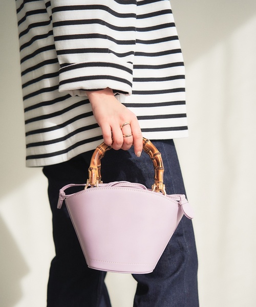 -LE TALON 2022SS-天然のバンブーハンドルがポイントの2WAYショルダー。小ぶりなサイズ感で今年らしさがありながら、小さ目の財布やスマホ、ハンカチ等の普段使いの荷物が入る大きさでデイリーにお使い頂けます。開け口は巾着型になっているので中の荷物が見えにくいのも安心。取り外し可能なショルダーストラップも便利です。*バンブー部分は個体差がございます。*店頭・屋外での撮影画像は、光の当たり具合で色味が違って見える場合があります。商品の色味は、スタジオ撮影の画像をご参照ください。