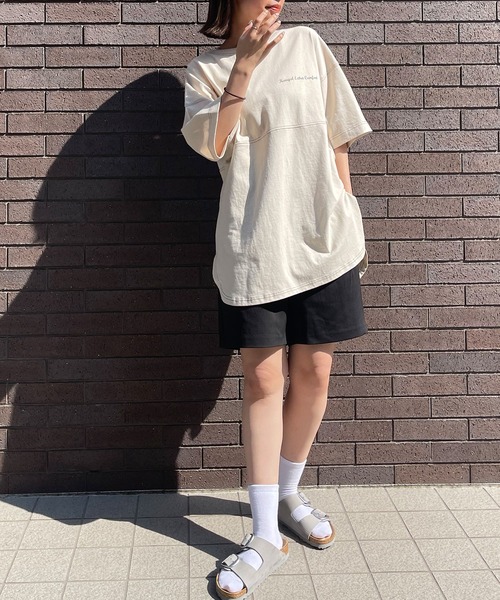 配色のステッチを施したチュニック半袖Tシャツ 昨年人気のチュニックTシャツにカラーバリエーションを増やして登場! バイカラー(配色)のステッチがアクセントをプラスするチュニック。 ゆったりめのシルエットでリラックス感のある着心地です。 抜け感のある首元で女性らしい柔らかな雰囲気のTシャツ。 重ね着にも映える人気のラウンドフォルムの裾シルエットもポイント◎ サイドスリットが深めに入っているので、レイヤードスタイルにも大活躍間違いなし。 バックにさりげなくあしらったプリントでシンプルなTシャツでも一気にトレンド顔に。 大人も使いやすい、洗練されたデザインです。 【COTTON USA綿使用】 cotton usaの綿100%生地を使用しており、綿独特の風合いが気持ちの良い素材です! 天然素材ならではの着心地の良さをお楽しみください。 【おススメコーディネート】 1枚での着用はもちろん、シャツやフルジップパーカー等、ライトアウターのインナーとして一層の存在感を発揮。 デニム、スキニーと合わせたストリートコーデ、アメカジティスト漂うスタイリング等、幅広いスタイルで魅力を発揮する1着。 小物にはキャップやスニーカーでカジュアルに。 春夏らしく、サンダルやカゴバッグと合わせても爽やかな印象に。 レザーの小物やパンプスでスタイリングをピリッと閉めるのもおススメです。 【カラー】 ・ライトグレー(灰、灰色) 切り替えの色がさりげないアクセントになる、柔らかな印象のカラー。 ・ブラック(黒) ホワイトのステッチがコーディネートのアクセントになる、モードなカラー。 ・オフホワイト(白、白色、生成り) 合わせる色を選ばないベーシックなカラー。 ・オフベージュ どんなアイテムにも合わせやすい万能カラー。 ・ピンク(桃) コーデを華やかにする、優しいパステルカラー。 ・エメラルド(緑) 爽やかで涼しげなカラー。フレッシュな印象を与える華やかなカラー。 【サイズ】 M(9号相当) L(11号相当) LL(13号相当) モデル Mサイズ着用 【KANGOL EXTRA COMFORT(カンゴール エクストラ コンフォート)】 KANGOLは帽子から始まったイギリス発祥のブランドです。 80年以上の歴史を持ち、長い歴史を通して進化を続けながら 今なお幅広い層から絶大な指示を得ています。 「スポーティー要素があるアイテムだけど、気兼ねなく様々な場面で着用できる」 定番アイコンやロゴを使いながら、大人が着たくなる、 日常に使えるアイテムにトレンド要素をプラスし 快適でデイリーユースな、トレンドカジュアルを提案します。