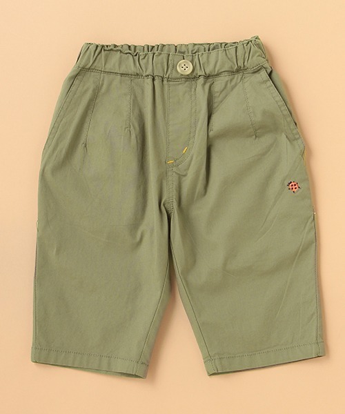 足元に軽やかさが生まれる6分丈のシェフパンツです。 元気でパワフルな雰囲気に、前ポケット下のてんとう虫刺しゅうがさらに春夏らしい着こなしを盛り上げます。左右にわたってブランドロゴをほどこした、アイキャッチな後ろポケットもおしゃれ。前ベルトに飾りボタンのアクセントを添えており、トップスインもサマに見せてくれるアイテムです。後ろポケットにつけた布のフラッシャー(ヒップラベル)は下げ札的な役割なので、着用時に外すことをおすすめします。ウエストにアジャスターゴムつきです。【おすすめの着用時期は春夏シーズン】【透け感】透けない【生地の厚さ】普通【伸縮性】あり【裏地】なし【ポケット】あり【アジャスター】あり