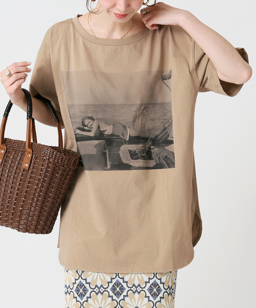 【2022SS】 B.C STOCK 大人が着やすいシックなフォトTシャツが登場! 夏をイメージして70年代のヨットガールのフォトをプリントしました。 フロントに大きく施したプリントがキャッチーなデザイン。 やや薄手の素材にしたので、カジュアルになりすぎずフェミニンに大人っぽく着ていただけます。 洗濯機洗い可能でデイリーユースに気兼ねなく取り入れて頂けます。 ********************** 透け感:なし(ホワイトのみ、ややあり) 裏地:なし 伸縮性:ややあり 光沢感:なし 生地の厚さ:やや薄手 ********************** 【スタッフ着用コメント】 《スタッフasako》 年齢:30代前半/身長:153cm/体型:普通/普段サイズ: S~M/着用サイズ :フリー サイズ感:余裕を持って着られるオーバーサイズで、ボックスシルエットのような、ゆとりがキレイに出るサイズ感でした。首元が詰まっていないのも、個人的に好みでした◎ 素材感:やや伸縮性のあるカットソーで、毛羽立ちが少なくスムースな肌心地でした。 着心地:素材が柔らかいので、動きやすかったです。オーバーサイズですが、丈が長すぎないのでメンズっぽくなりすぎずに着られるデザイン。スムースな素材感も、着心地が良かったです。 ********************** ※取り扱いについては、商品についている品質表示でご確認ください。 ・着用や洗濯の繰り返しで、プリントにひび割れ、脱落することがあります。 ・この製品は色あせしますので、光の当たらない場所で乾かしたり、保管してください。 ・型崩れをさけるため、洗濯後は形を整えてください。 ・水洗いで多少縮みます。 ※店頭・屋外での撮影画像は、光の当たり具合で色味が違って見える場合があります。商品の色味は、スタジオ撮影の画像をご参照ください。 モデルサイズ:H153 採寸情報は「サイズ・詳細」をご確認ください 着用サイズ:フリー