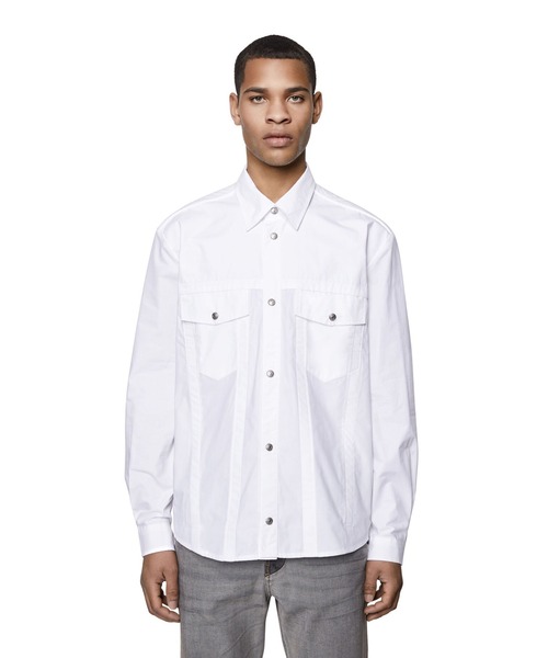 品番:A055100PCAL シルバーのスナップボタンがアクセントになったこちらのシャツはスーツスタイルにおいて活躍するのはもちろん、一枚使いのカジュアルな装いにもうってつけのアイテム。どんな色のアイテムとも合わせやすく、かつ清潔感のあるルックスはラフさとこなれ感を持った魅力的なスタイリングをシャレ感たっぷりに表現しています。オンオフ問わずオールシーズン活躍する定番のシャツは、メンズにとってはまさにエッセンシャルなアイテムに。