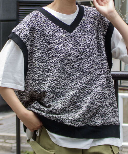 トレンドのニットベストが22SSついに登場! ■DESIGN 昨年よりトレンドだったニットベストが春夏仕様として登場! 身幅を広くとり肩の落ちるドロップショルダーに、着丈はすっきりさせることで気分なボックスシルエットに仕上がっております。 リブの配色もデザインのアクセントに。 ■FABRIC 春夏シーズンにぴったりなさらっとした肌触りの質感です。 ブルーとグリーンはハニカム調の素材を用い、ざっくりした格子柄が特徴。 ブラックは霜降りサマーツイード素材を採用し、ミックス調のシックで大人な表情です。 ■COORDINATE ロンTやシャツとの合わせが春先はおすすめですが、幅広のサイズ感に負けないビッグシルエットのものが相性◎ シンプルなカットソーに合わせるだけでこなれたレイヤードスタイルが作れます。 ボトムスもゆとりを持たせたワイドなタイプがバランスよくまとまります。 【GLOSTER/グロスター】 『男性であること、女性であること、日本人であること、人間であること。』 自由に生きる為に必要な洋服であり、着る人を主体と考えたプロダクトを提案します。 普遍的な洋服の礎であるワーク・ミリタリーをベースにエッセンスとして艶を加えて形にします。 洋服の原型を生かしながらもひねりの効いた素材を使い、ディテールは歴史の焼き増しではなく新たな価値観を創造します。 ※お取扱い上のご注意 アテンションタグを必ずご確認の上、着用又はお取り扱いください。 ※店頭及び屋外での撮影画像は、光の当たり具合で色味が違って見える場合があります。 ※商品画像に関しては出来る限り忠実に表示出来るよう努めておりますが、お客様がご利用のモニターの設定及び特性により、実際の商品と比較し色味に若干の誤差が生じる場合があります。 ◇商品のお気に入り登録◇ 【お気に入りに登録】を是非ご活用ください。 再入荷の通知や、ラスト1点の通知、セールの通知がいち早く届きます。 ◇ブランドのお気に入り登録◇ 新商品や再入荷など、いち早くブランドのお得情報が届きます。
