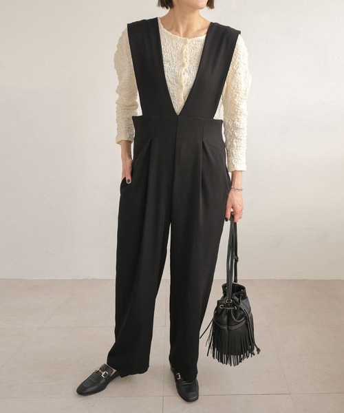深めVネックの華奢見えサロペット。フロントのタックが美シルエットを作るサロペットが登場。ウエストはバックゴムとベルトで自分好みのサイズ感に調節できるのでストレスフリーに着用できます。ハイウエストと深めのVネックで上半身をスッキリ見せ、インナー次第で様々なコーデが楽しめる1枚です。■コーディネートアイテムTシャツ…ts77x04963Tシャツ…ts78x04957Tシャツ… ts76x04919■商品仕様ツイル生地裏地…なし伸縮性…なし透け…なしポケット…あり付属品…なし着脱…ウエストバックゴム※繊細な生地ですのでお洗濯などのお取り扱いには十分ご注意ください。詳しくは下げ札をご覧ください。※着用の際、摩擦や発汗により衣類やバッグ等に色移りの恐れ(特に淡色系のもの)がありますので、十分ご注意下さい。【ご購入前に必ずご一読下さい】※モニタ環境によって、商品の色合いが多少異なる場合がございます。※色落ちの恐れがありますので、他のものと分けてお洗濯して下さい。※商品をお安く提供させて頂く為、検品後のアイロン掛けは省略させて頂いています。発送時も簡易梱包の為、お受け取り時にたたみ皺があると思いますがご了承下さい。