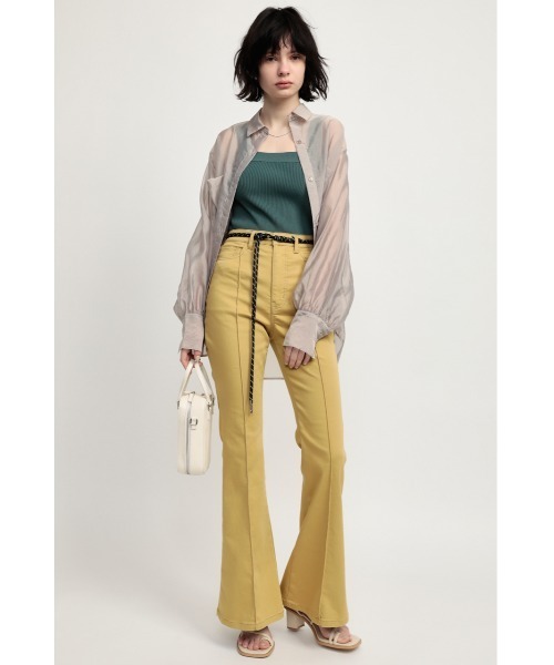 サテン織の生地を使用したカラーパンツ。スタイルアップできるハイウエストに、膝の位置をやや上に設定することで、美しいフレアシルエットを実現。足元をヒールにするとより脚長効果があるのでおすすめ。後ろにSLYオリジナル刺繍が施されているのもポイント。SLY一押し22AW新作アイテム:・030FAR30-1050 2WAY OVER SIZE B-3・030FAZ30-0790 VINTAGE CRACK SHORT B-3・030FAR30-3840 DAL 2WAY OVER SIZE B-3・030FAZ55-2380 CHUNK SOLE SIDE GORE BOOTS・030FAZ55-1990 CHUNK SOLE KNEE BOOTS※商品画像はサンプルのため、色味やサイズ、素材の混率等の仕様に変更がある場合がございますので、予めご了承ください。※一部予約商品につきましては生産上の都合によりお届け予定日や店頭発売と前後する場合もございます。※追加生産商品は、一部の店舗、通販で販売中の場合がございます。予めご了承下さい。▼商品のお気に入り登録お気に入りアイテムの値下げ・再入荷・在庫1点などの通知を受け取ることができます。▼ブランドのお気に入り登録新商品や再入荷、セール、クーポン配布などお得な情報を受け取ることができます。