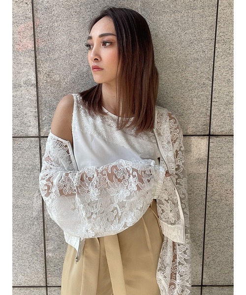 総レース仕立てでシアーに仕上げた、センシュアルなムード漂うブルゾン。 すっきりとバランスよくマッチしてくれるVネックもポイント。フロントZIPで脱ぎ着も楽にすることができます。 カジュアルなアイテムながらも、繊細なレースでレディライクに決まるアイテムです。