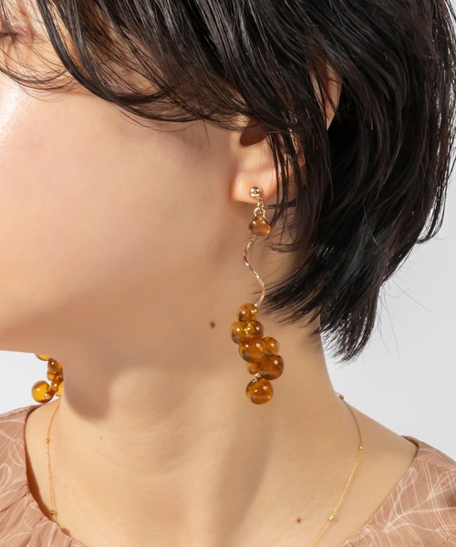 ◆2022SS新商品◆ POINT ・大きさの異なるビーズを組み合わせた泡のようなデザインのピアス ・さりげないアシンメトリーデザイン ・ポスト部分にチタンを使用